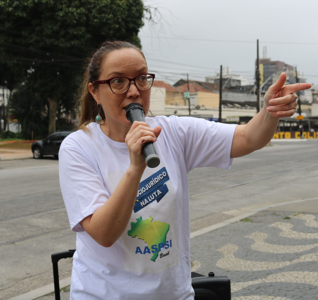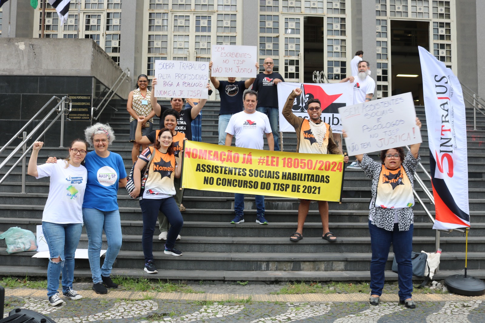 No último dia 06 de novembro assistentes sociais, psicólogas/os e escreventes realizaram um ato público em frente ao Fórum Central de Santos, em São Paulo. Chamada de “Nomeia já”, a ação que teve organização e apoio da AASPSI Brasil, da Associação de Base dos Trabalhadores do Judiciário do Estado de São Paulo (Assojubs) e o Sindicato dos Servidores Públicos do Judiciário Estadual na Baixada Santista (Sintrajus), pediu a nomeação das/os profissionais aprovadas/os nos concursos e ainda não convocados. O ato também denunciou a situação de precarização das/os servidoras/es na maior Corte do país, em especial na Baixada Santista.