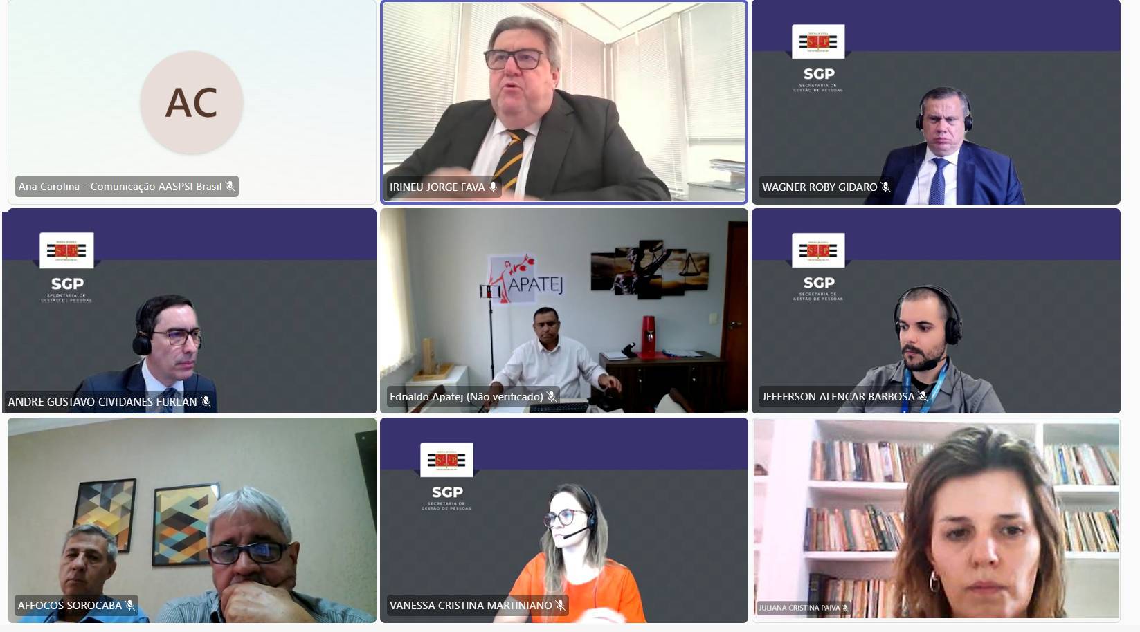Nesta segunda-feira (06/10), ocorreu mais uma rodada de negociações entre o Tribunal de Justiça de São Paulo e as entidades representativas das servidoras e servidores. A AASPSI Brasil, participou da reunião virtual representada pela diretora Juliana Cristina de Paiva.